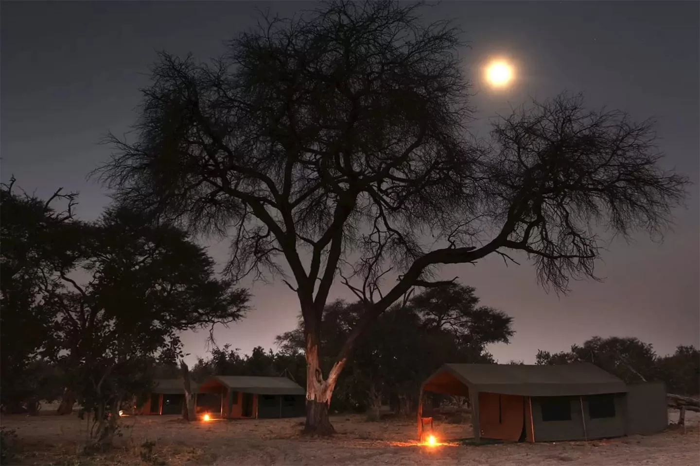 Pernoites: acampamento móvel em Moremi, Delta do Okavango.