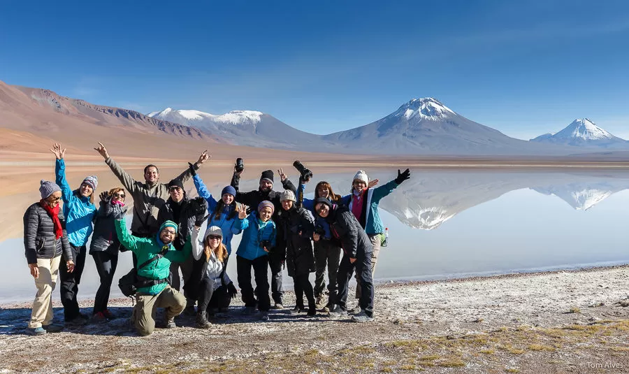 Aquele amanhecer foi algo mágico. Toda a ansiedade e expectativa coletivas foram traduzidas em encantamento. Na total ausência de vento, céu e montanhas se rebatiam fielmente nas calmas águas do grande lago. Um espetáculo de simetria da natureza. Não houve quem não cometesse o pecado do exagero, fotografando até muito mais que de costume. Depois de tanto fotografarmos, já se aproximando a hora do retorno a San Pedro, não me lembro agora quem me disse isto, mas foi a melhor frase para aquela situação: -Tom, vou guardar minha câmera na mochila, virar as costas para esta paisagem e não olhar mais para trás, pois do contrário não sairei daqui hoje.